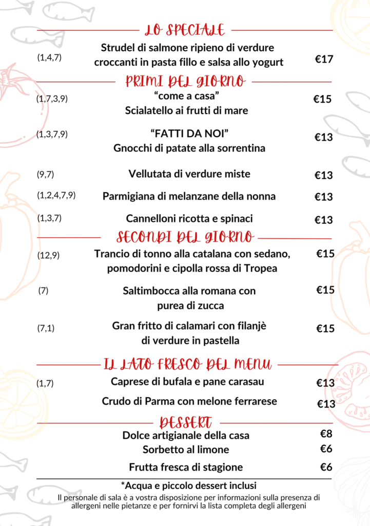 • Menù del Giorno